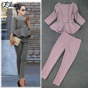 New 2019 Spring Autumn Fashion Women's Business Pants Suits Houndstooth Checker Pattern Ruffles Suits For Women 2 Pieces Set $80.70 $161.40